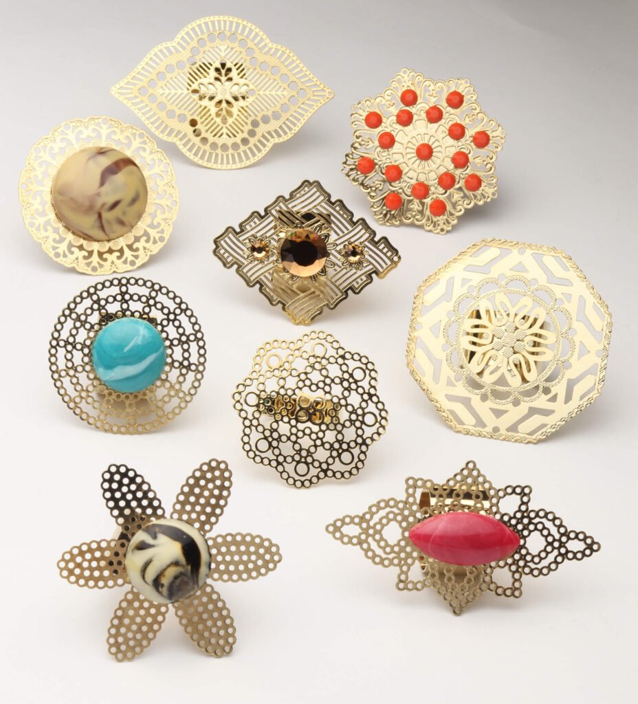 Produzimos acessórios diversificados como: Anéis, brincos, braceletes, botons, botões, chaveiros, clips, contrastes, gargantilhas, marcadores de livros, pingentes, pulseiras, brindes e o que sua imaginação permitir.